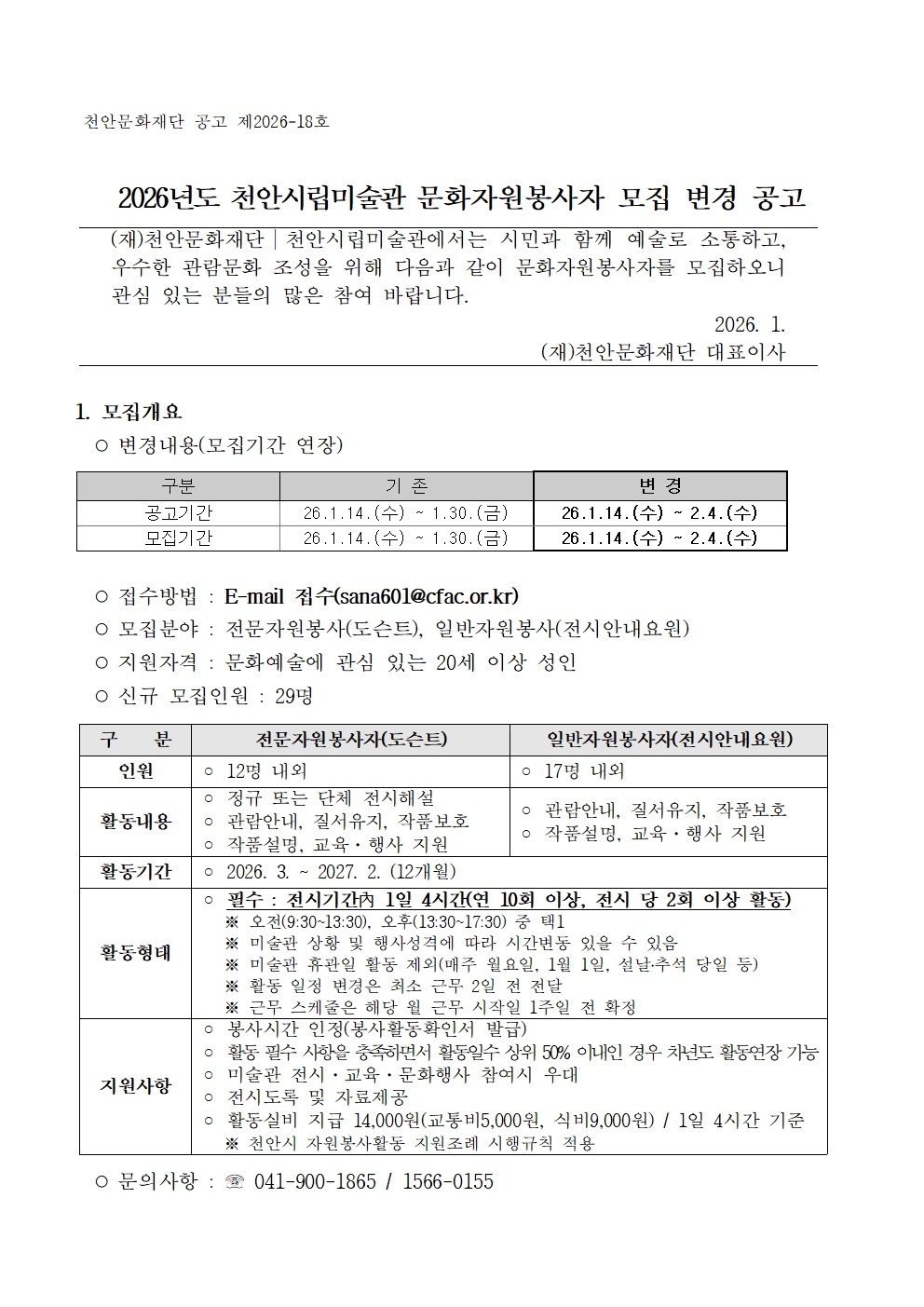 2026년 천안시립미술관 문화자원봉사자 모집 변경공고.pdf [78 KB]